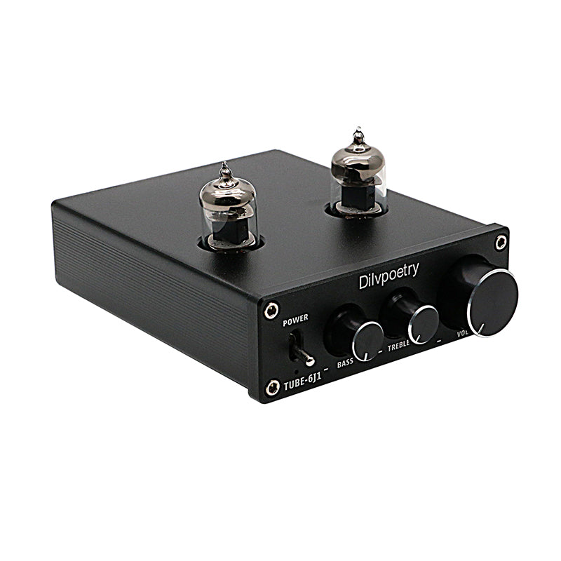 6J1 Tube Preamp HiFi Stereo Tube Preamplifier Treble Bass Tone Control TUBE-6J1 Black Front Panel