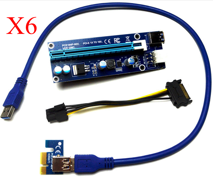 6pcs Pci-e Riser Pcie Extender Pcie 16x Extender PCI-E 1X to 16X Cable 6Pin DC-DC Graphics Card Extension