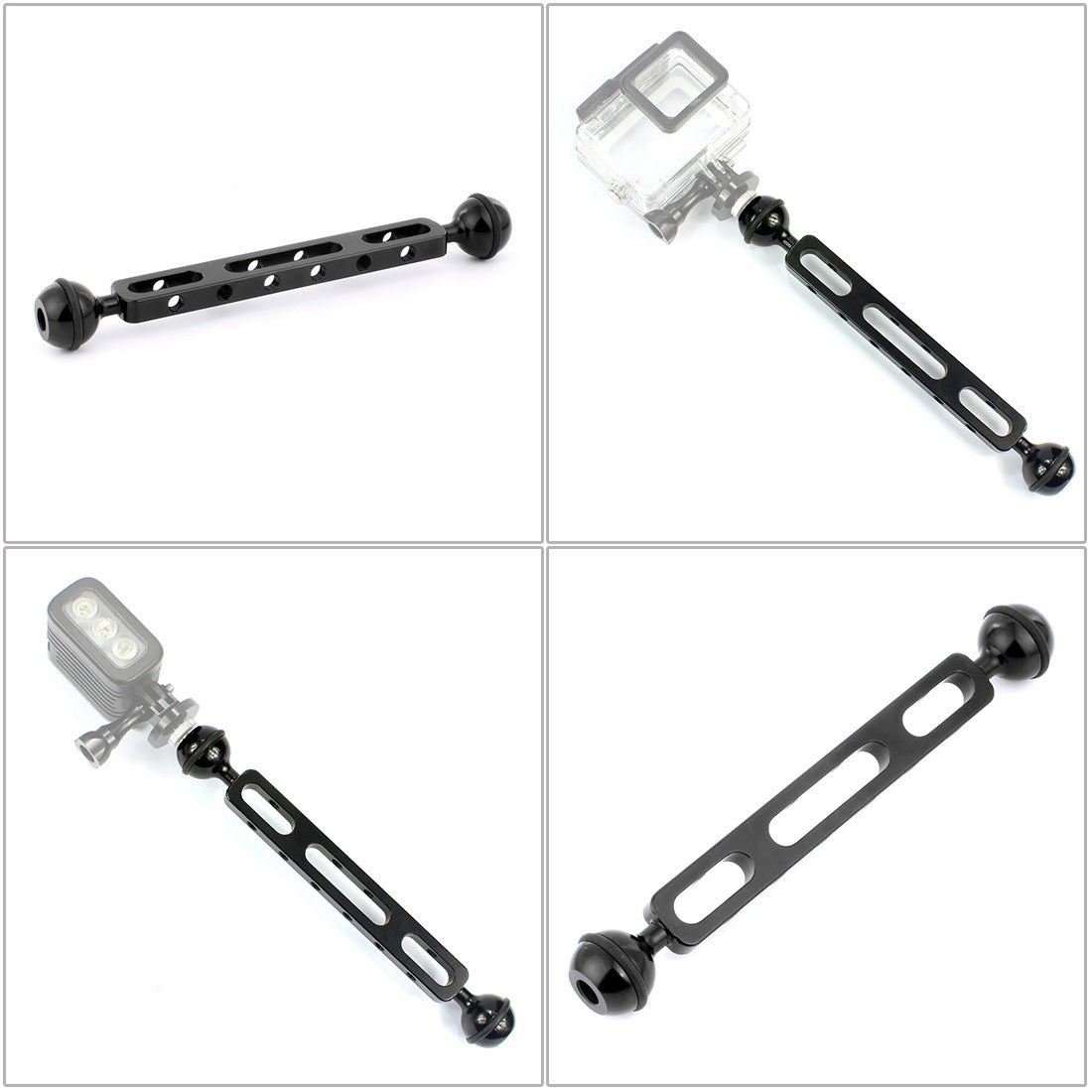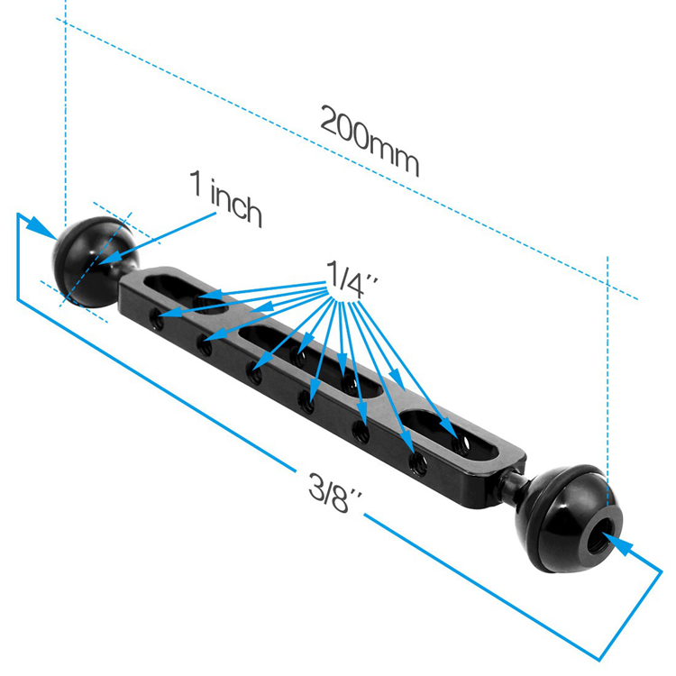 7.87"/20cm Dual Ball Arm Aluminum Alloy Ball Diameter 2.54cm For Underwater Torch Video Light PU242