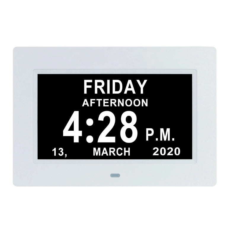 7 "Inch Digital Clock Calendar with Date Day Reminder 12H 24H 2 Modes for Elderly and Children White