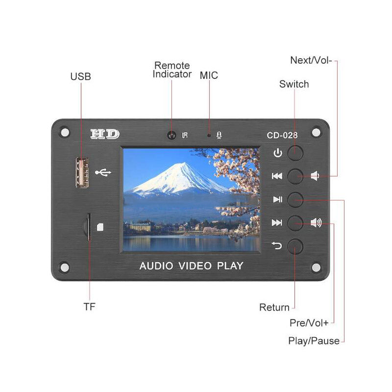 7V-24V Clock Timing Switch Decoder Multimedia Playback 2.8-inch LCD MP4 MP5 Video Decoding Board