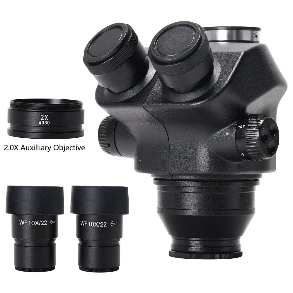 7X-50X Stereo Trinocular Head + WF10X/22mm Eyepiece Rubber Eye-Guards 2.0X Auxiliary Objective Lens
