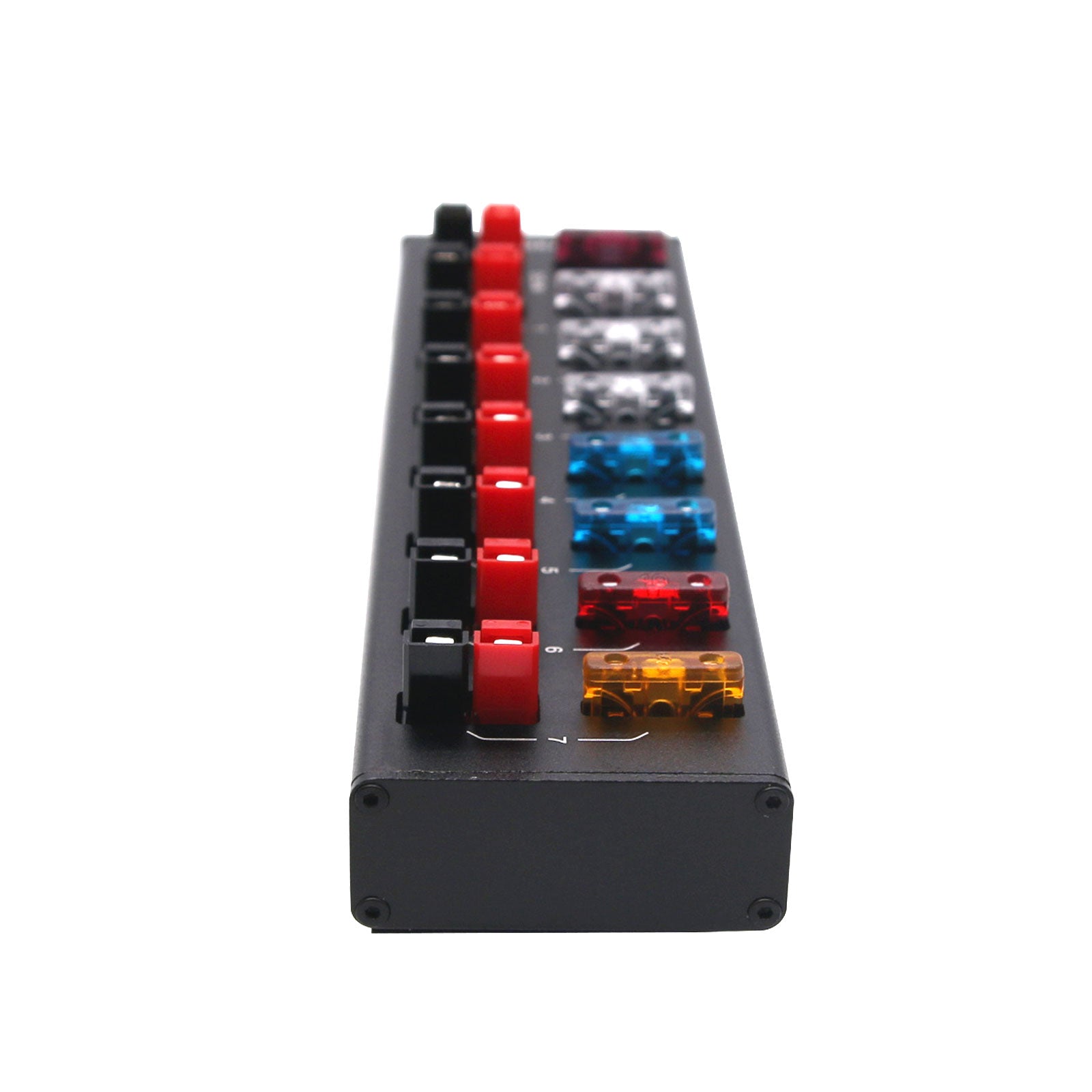 On this basis, we determined the number of distributor channels as eight-channel (1 input and 7 outputs). In this way, it can not only ensure the compact product volume, but also cope with the connection in most cases. Each path is equipped with a plug-in fuse without adding other circuits or indicating devices. It is a competent power distributor without redundant fancy functions.
