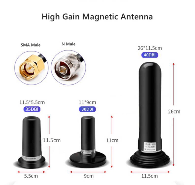 800-2700MHz 4G/LTE Omnidirectional 38DBI High Gain Magnetic Antenna 3-meter Waterproof Antenna for Outdoor/Vehicle