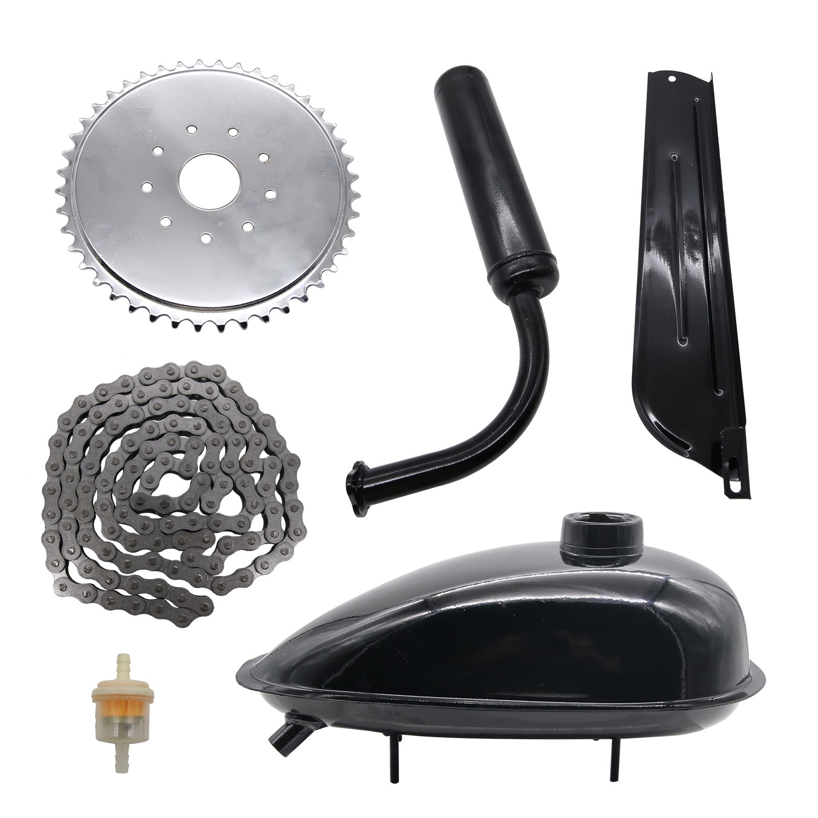 - This bike motor kit comes with everything that you will need, except gas and oil! You will be able to stop or start the engine as you ride.