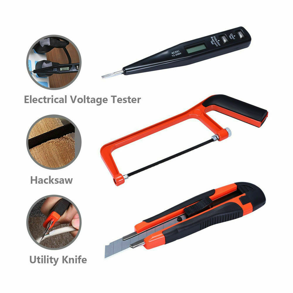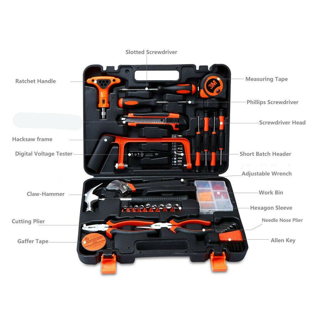 82Pcs Hardware Tool Kit Car Tool Wrench Socket Pliers Hammer Hacksaw+ Carry Box Home