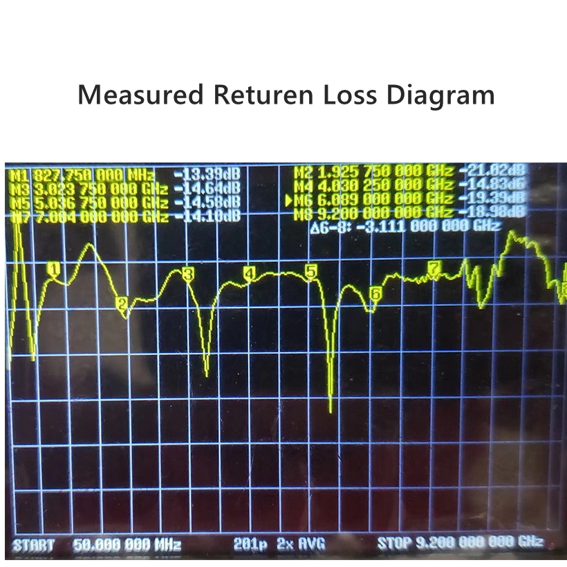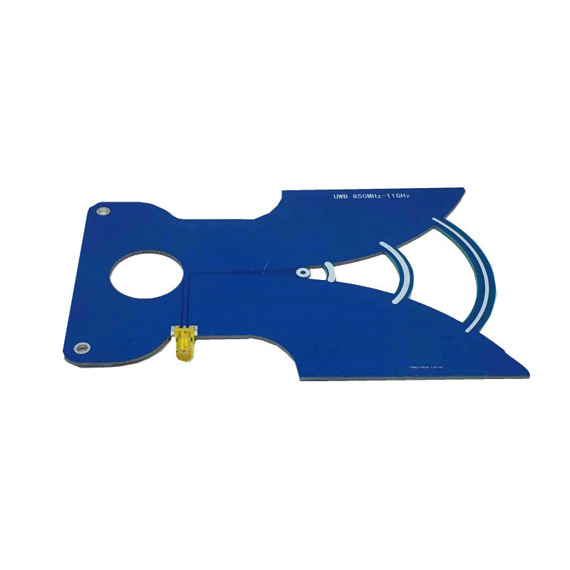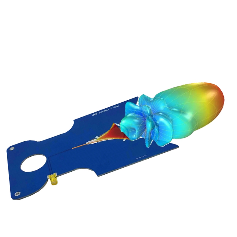 - This antenna is a coplanar linearly polarized directional ultra wide-band antenna, which has been designed, debugged, and optimized for multiple versions. The final operating frequency can range from 840MHz to 11GHz, with a standing wave ratio of ≤1.8, and a return loss of < - 12dB in the operating frequency band. This antenna can be used for receiving and transmitting signals from aircraft, positioning, image transmission, meteorology, astronomy, etc.