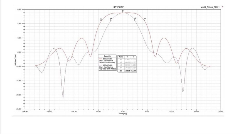 The radiation angle of the antenna operating to 3.2GHz at - 3dB is shown in the figure: