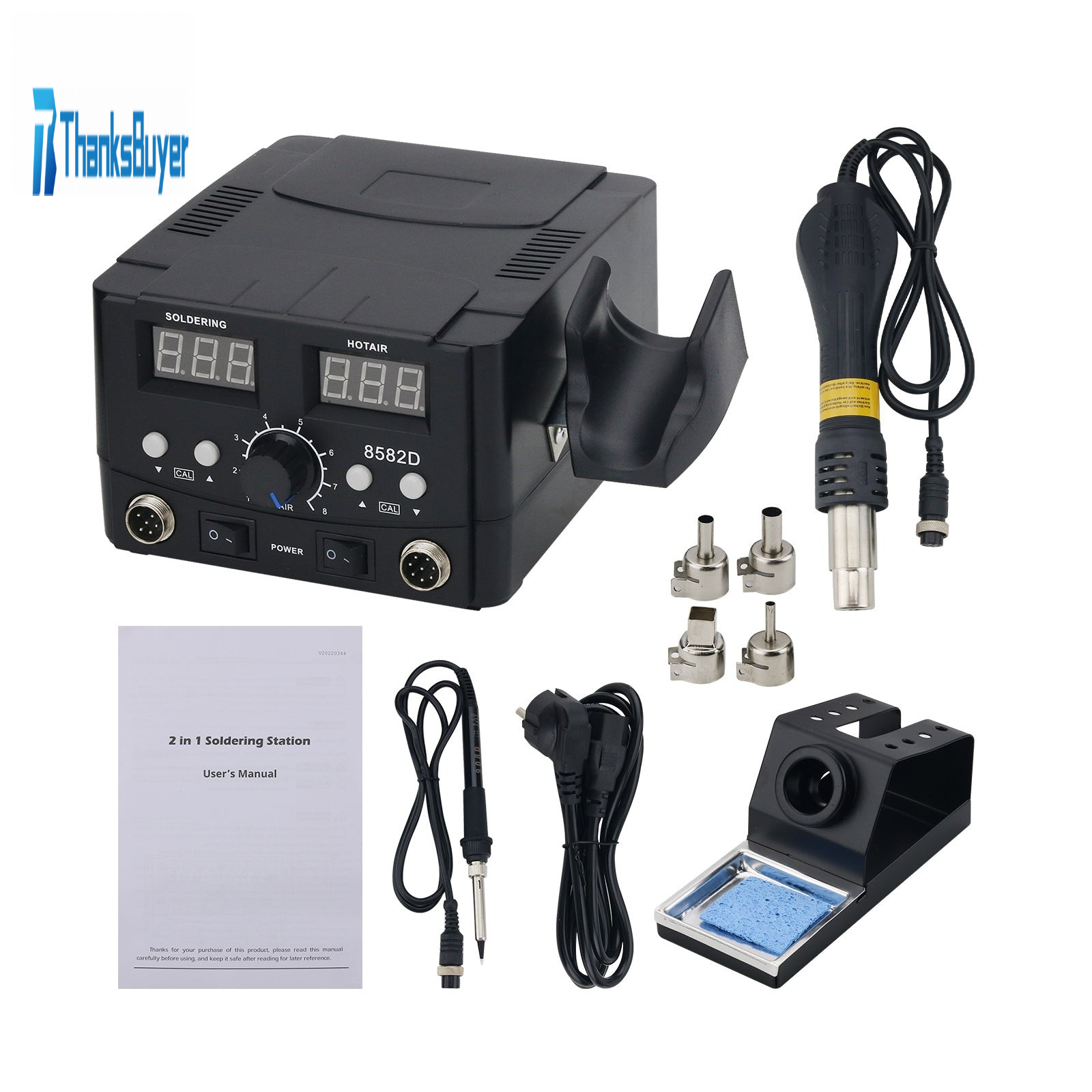 8582D 750W 2 in 1 Hot Air Gun & Soldering Iron Station with Digital Display Support Automatic Sleep