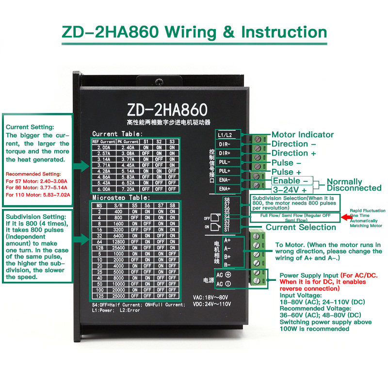 86 Stepper Motor 2-Phase 8.5Nm + Stepper Motor Driver For 57/ 86 Stepper Motors ZD-2HA860