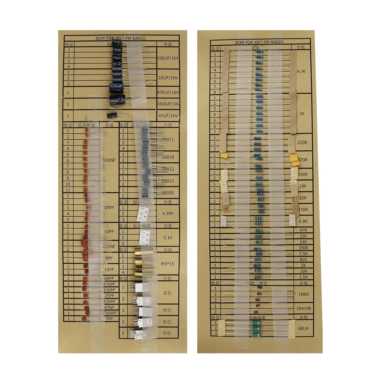- Resistors: High precision 5-color ring 1/4W resistors outperform normal 2-color resistors