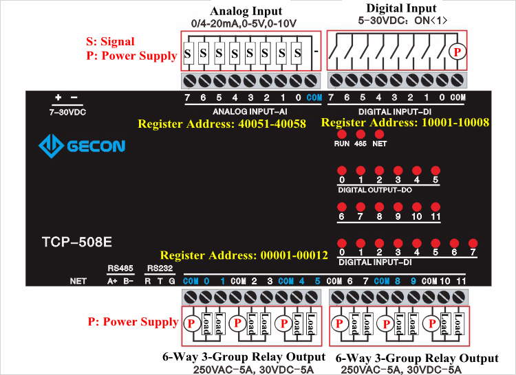 - Contact capacity: normally open relay: 5A/250VAC, 5A/30VDC