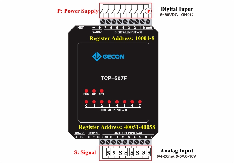 8AI + 8DI Industrial Controller For Modbus RTU TCP Ethernet Module TCP-507F Ethernet + RS485 + RS232