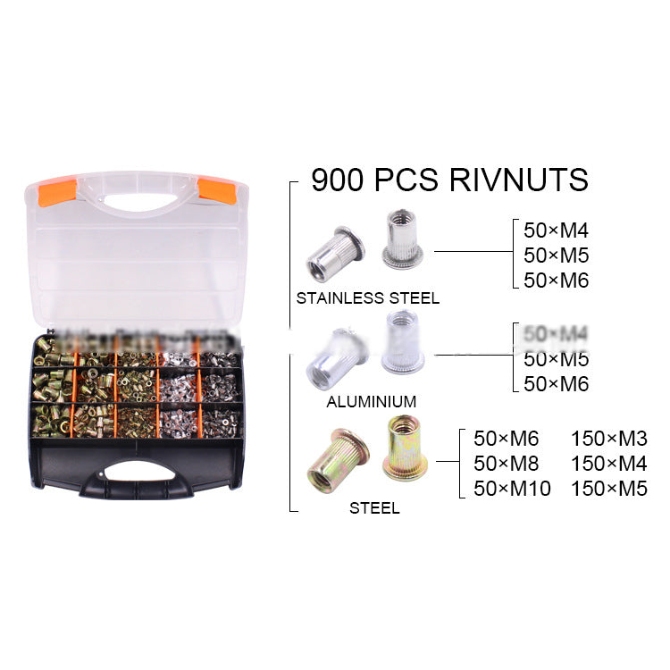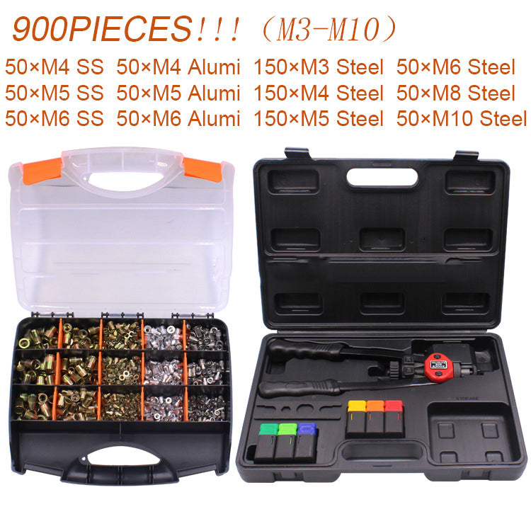 900pcs Nutset Tool Kit Rivnuts M3-M10 Stainless Steel Aluminum Steel Rivnuts & Rivet Nut Gun