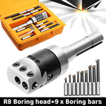 9Pcs 2" Precise R8 Boring Head R8 Shank Carbide Boring Bar Set Boring Tool for Milling Machine