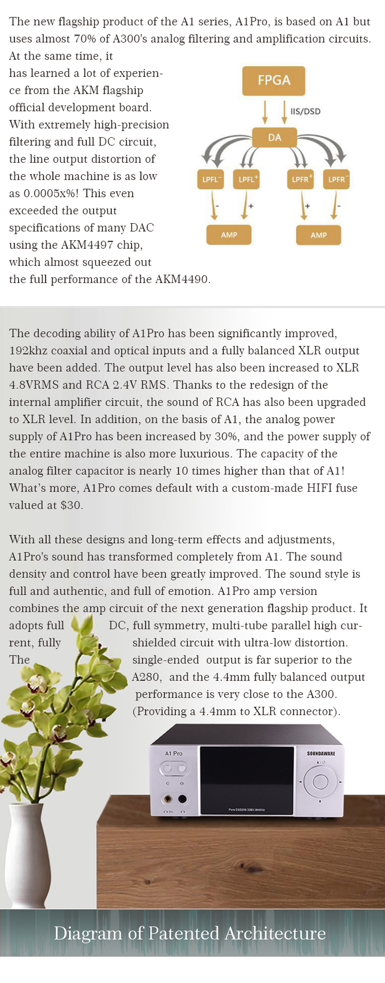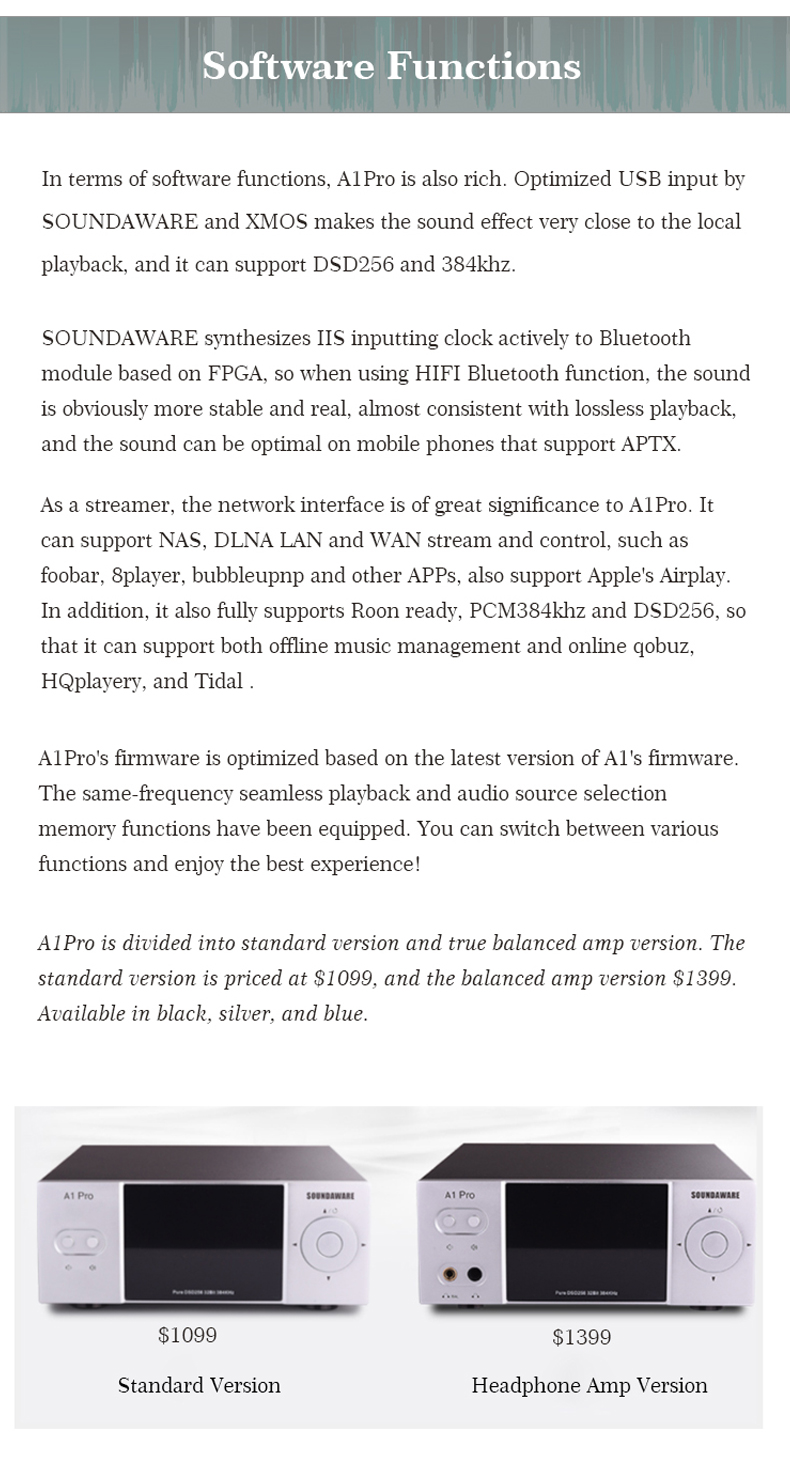 - A1Pro headphone amplifier version integrates the headphone amplifier circuit of the next generation flagship product. It adopts the high current of full DC, full symmetry and multi tube parallel connection. The load distortion of the full shielded circuit with Ultra low distortion reaches 0.0007x%, and the bottom noise is extremely low.