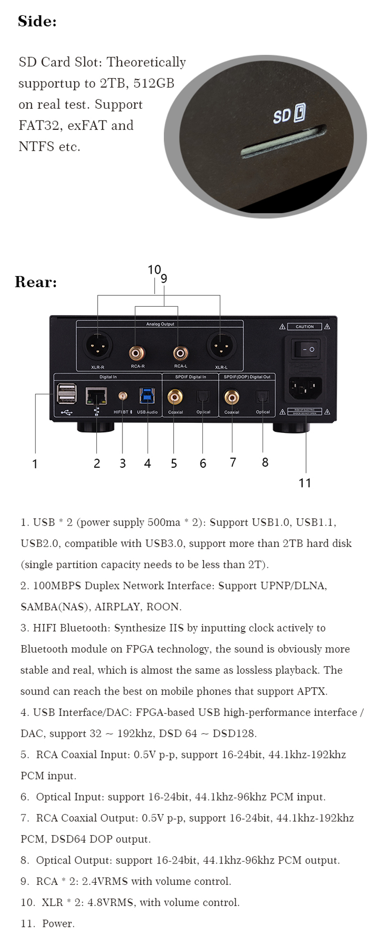 - Support MP3 WMA APE FLAC PCM