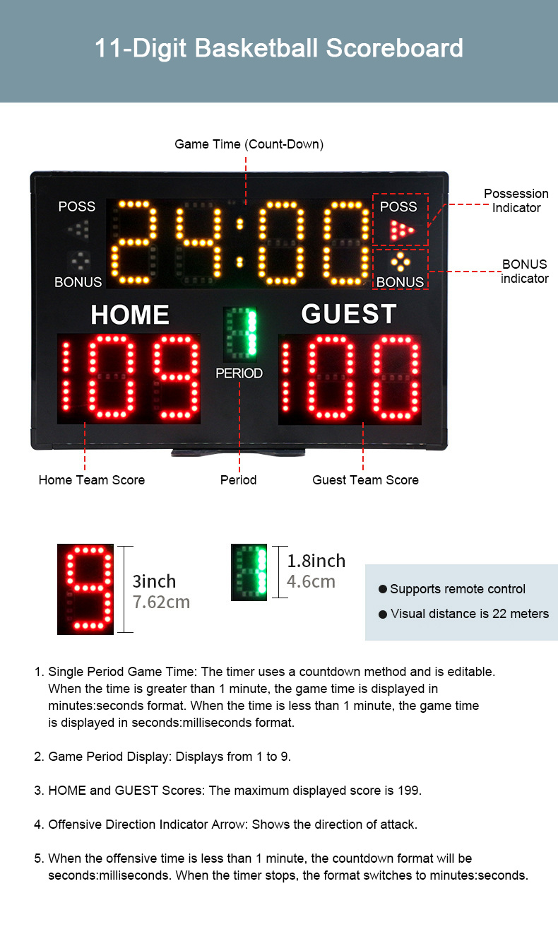 A30B 11-digit Basketball Scoreboard Portable Scoreboard w/ Remote Control for Competition Exercises