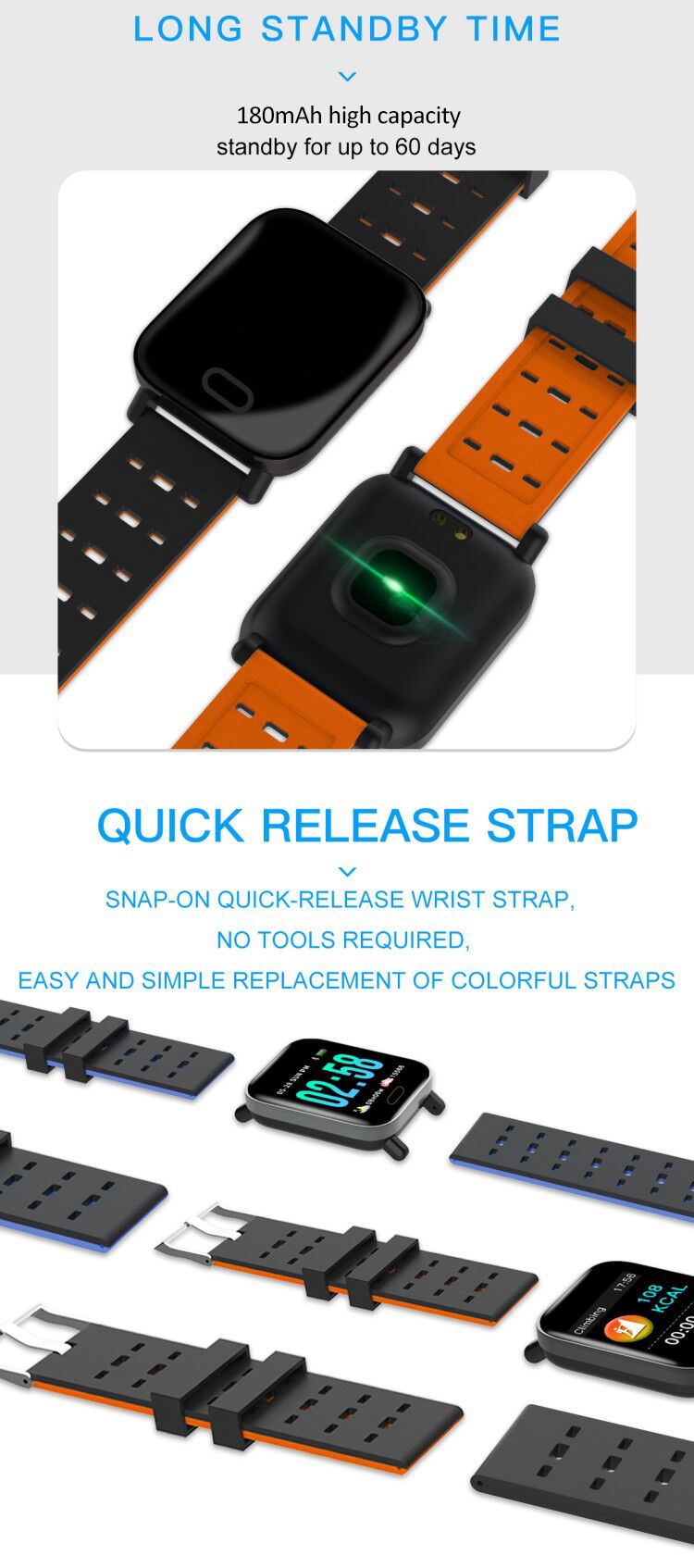A6 Smart Watch Waterproof Smart Bracelet Pedometer Heart Rate Monitor Bluetooth for IOS Android