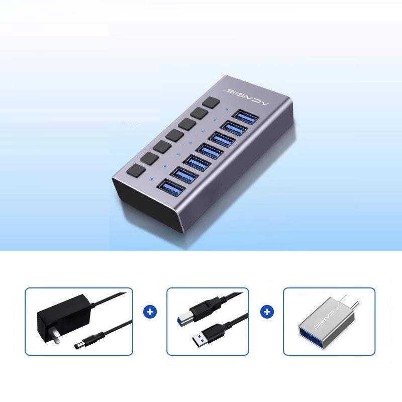 Acasis HS-707MG 7 Port USB Hub 3.0 5Gbps USB Splitter USB3.0 Aluminum Alloy for Laptop Desktop PC