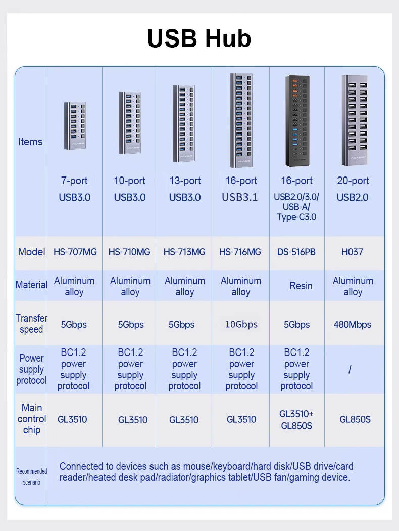 - HS Series USB Hub: Multiple interfaces make life simpler.