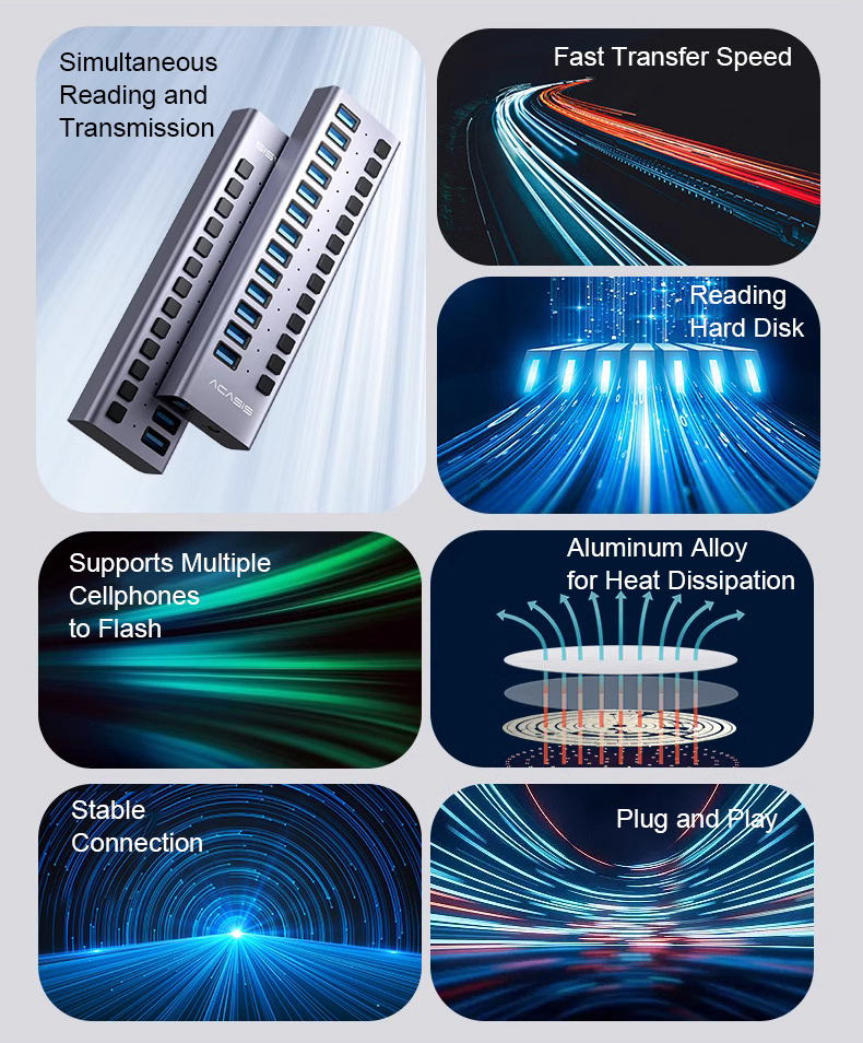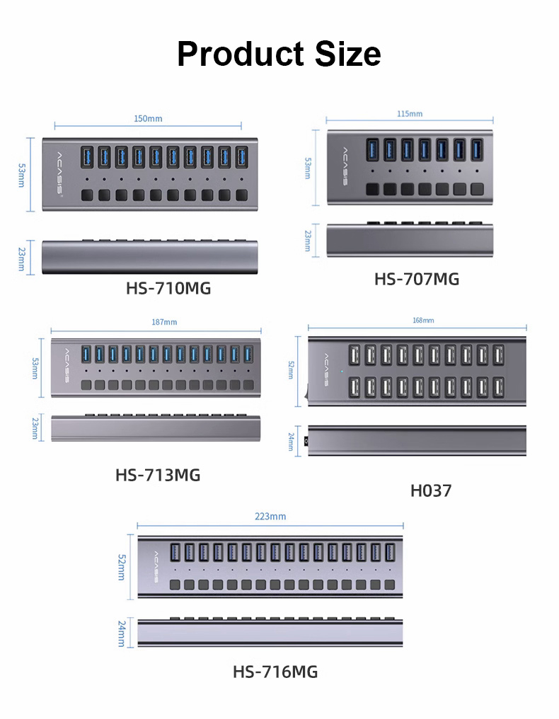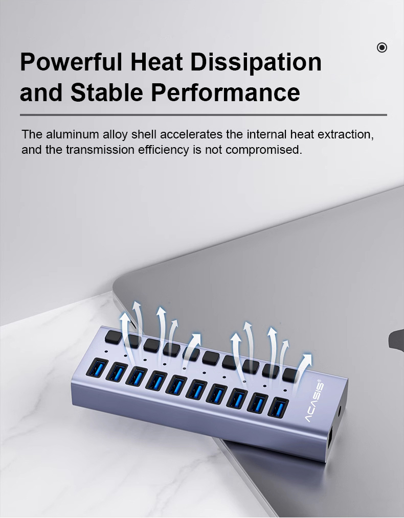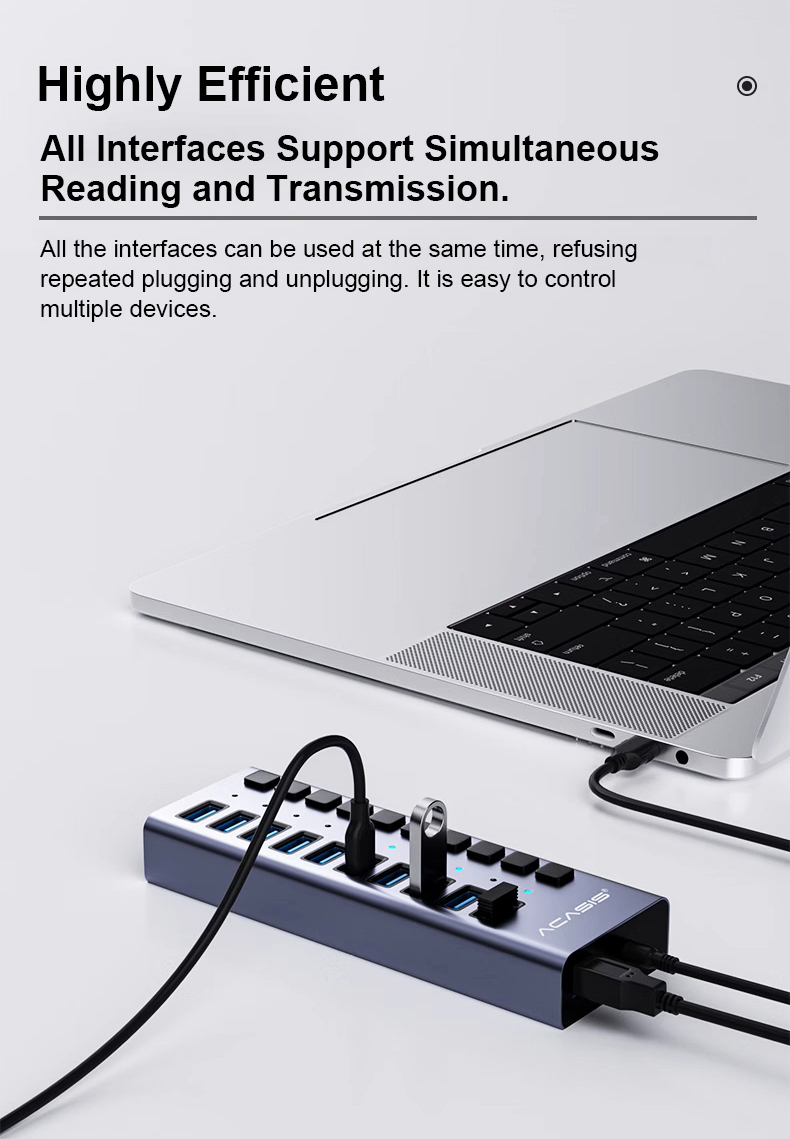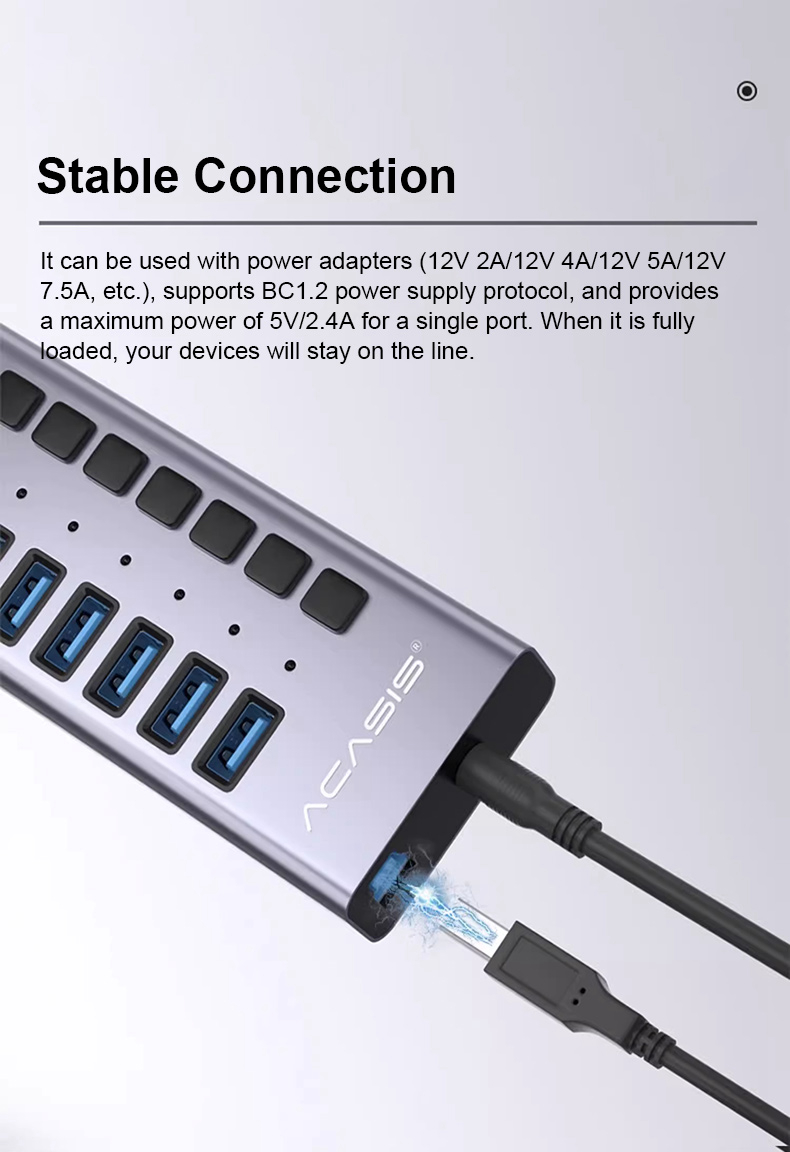 Acasis HS-713MG 13 Port USB Hub 3.0 5Gbps USB Splitter USB3.0 Aluminum Alloy for Laptop Desktop PC