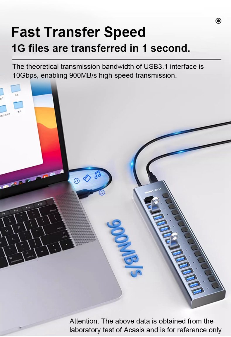 Acasis HS-716MG 16 Port USB Hub 10Gbps USB Splitter USB3.1 Aluminum Alloy for Laptop Desktop PC