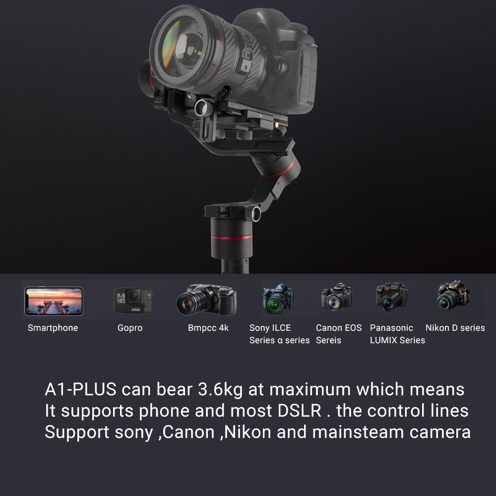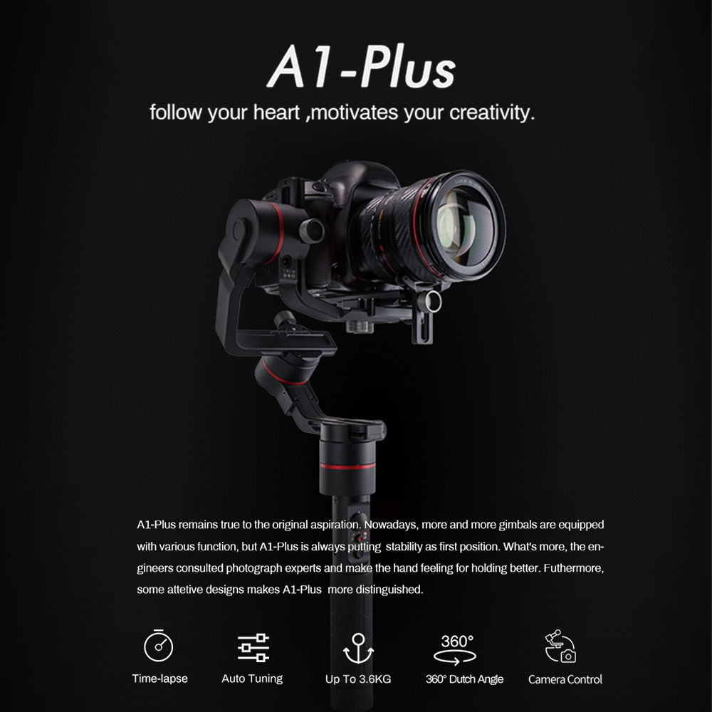 Accsoon A1 Plus 3-Axis Handheld Gimbal Stabilizer 3.6Kg Payload Full Visual for DSLR Cameras