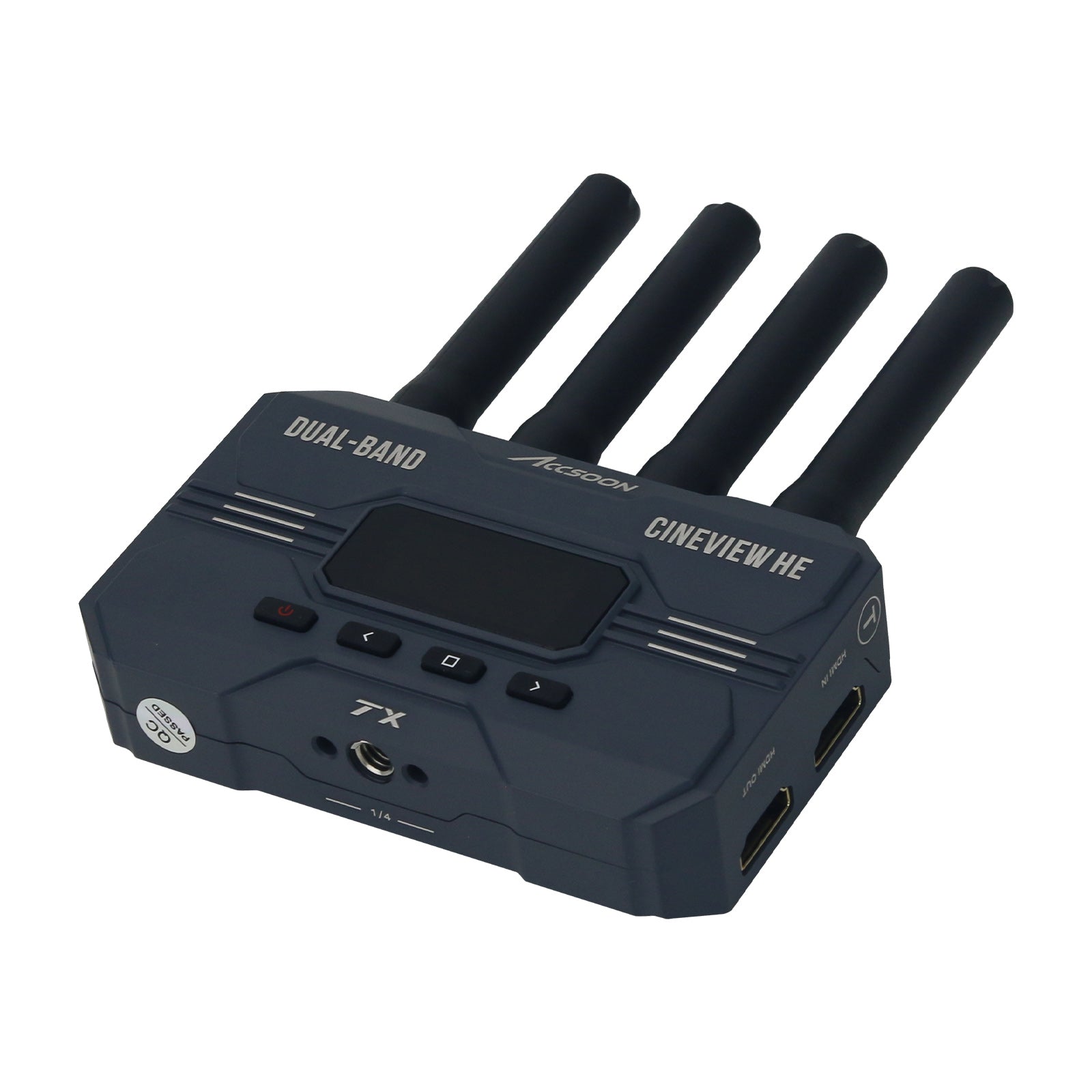 * HDMI-Compatible IN & LOOP-OUT: Connect in multiple ways. CineView HE's transmitter features one HDMI-compatible in and one HDMI-compatible loop-out, which can be connected to a camera and a monitor, respectively. What's more, HDMI-compatible loop-out has been upgraded to zero-latency lossless output.