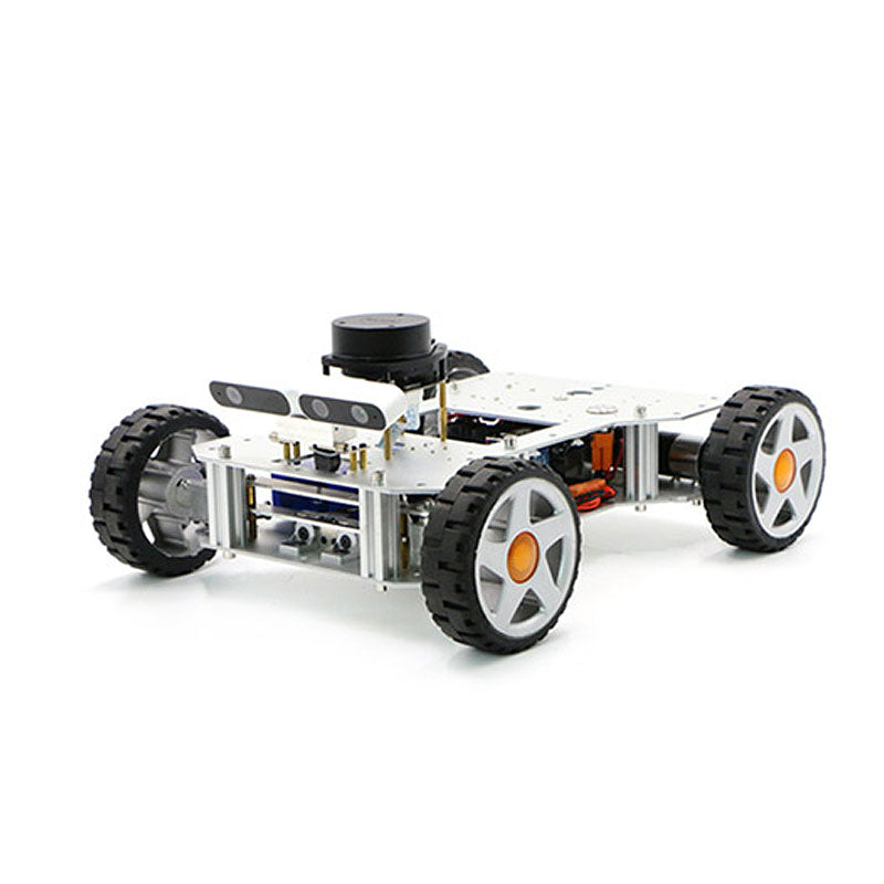 The Ackerman robot uses rubber wheels, which can be used in indoor and outdoor environments. The front wheels are equipped with a steering mechanism, and the rear wheels are powered by dual motors, and the front wheels are steered through a differential.