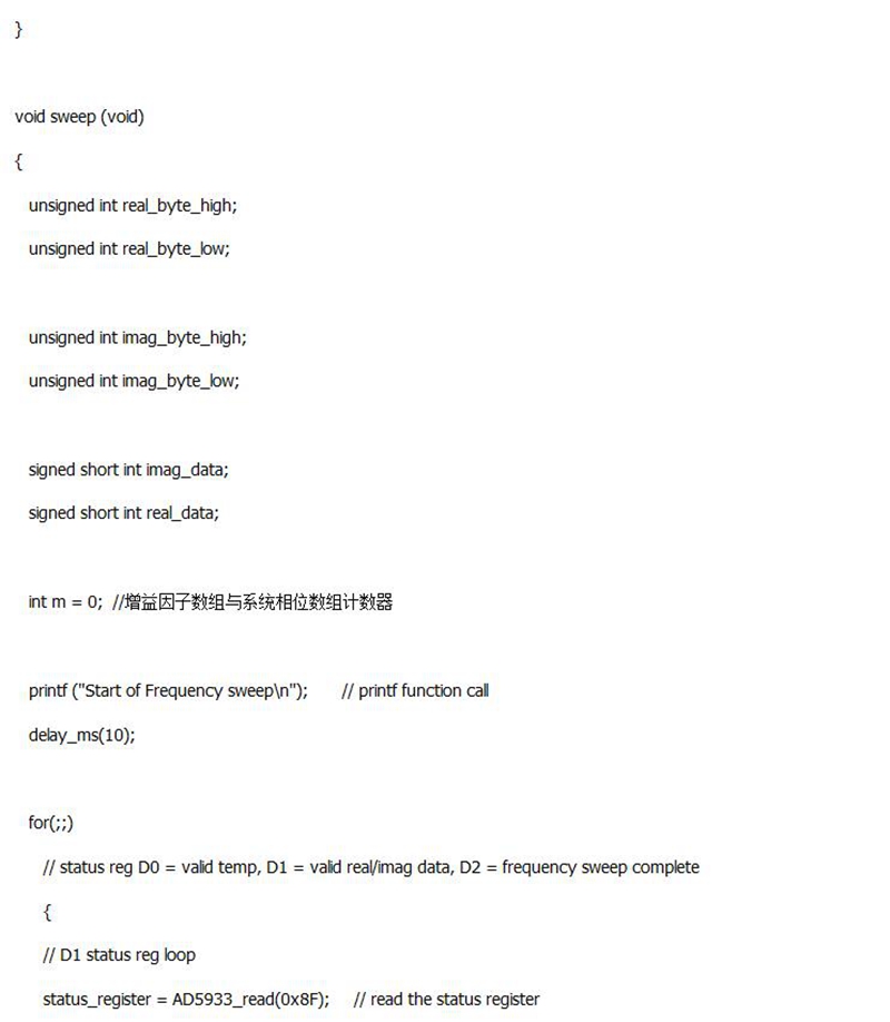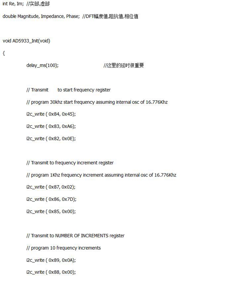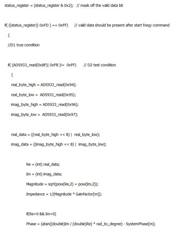 - The AD5933 is a high-precision impedance converter system solution that integrates a frequency generator and a 12-bit, 1-MSPS analog-to-digital converter (ADC) on a chip. The signal generated by the frequency generator is used to stimulate the external complex impedance. The response signal of the external impedance is sampled by the on-chip ADC, and then processed by the on-chip DSP using discrete Fourier transform (DFT). The DFT algorithm returns a real part (R) data word and an imaginary part (I) data word at each frequency. Then, the impedance and phase values of the device under test can be calculated based on the real and imaginary data words.