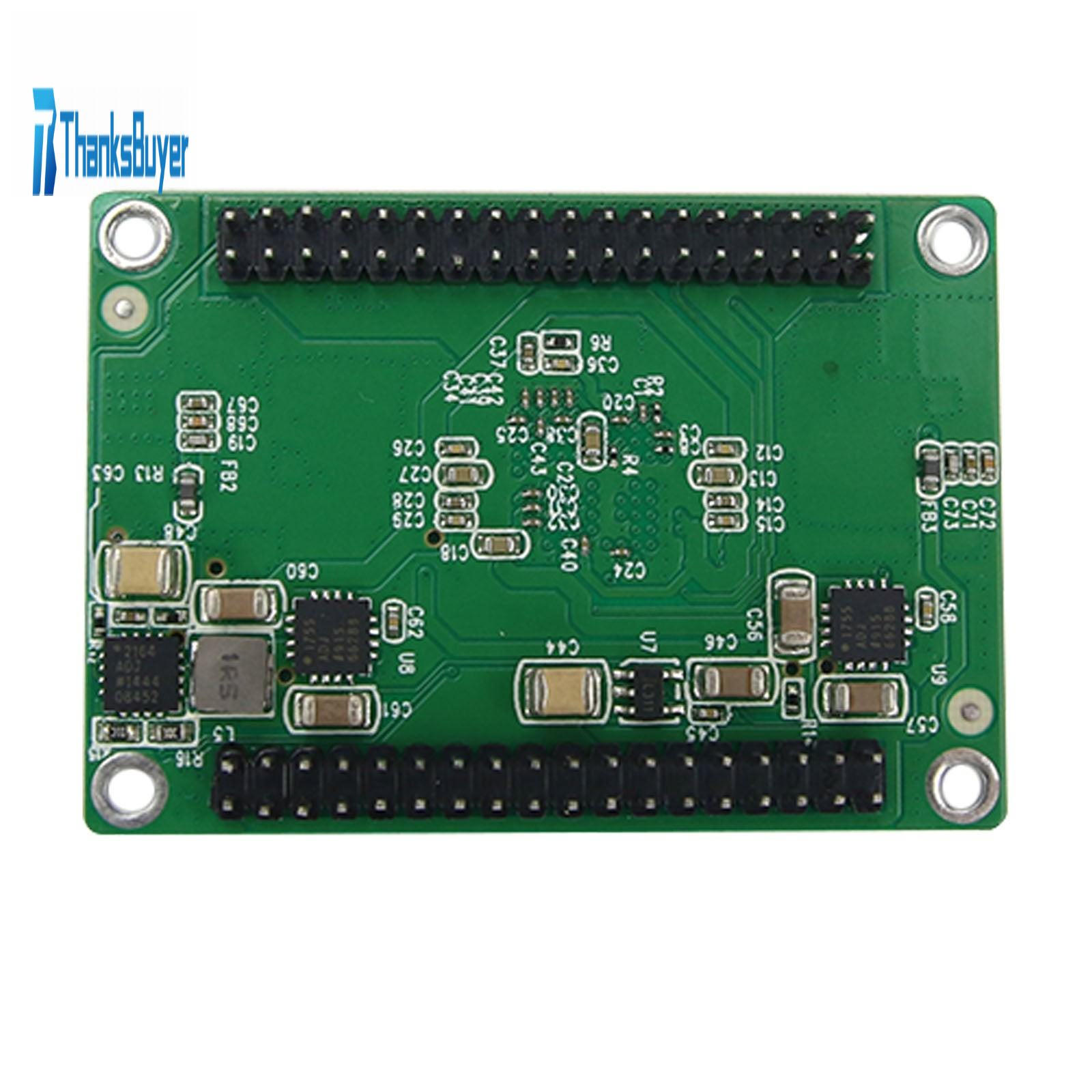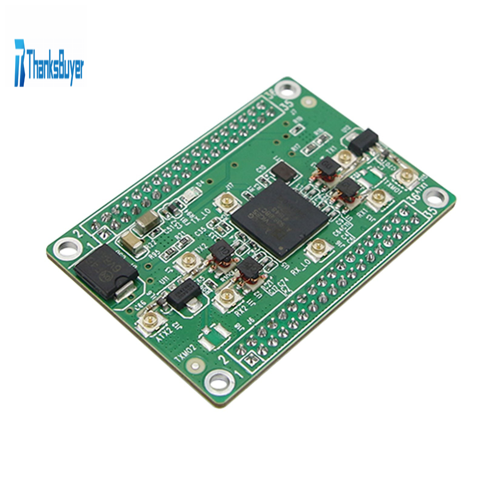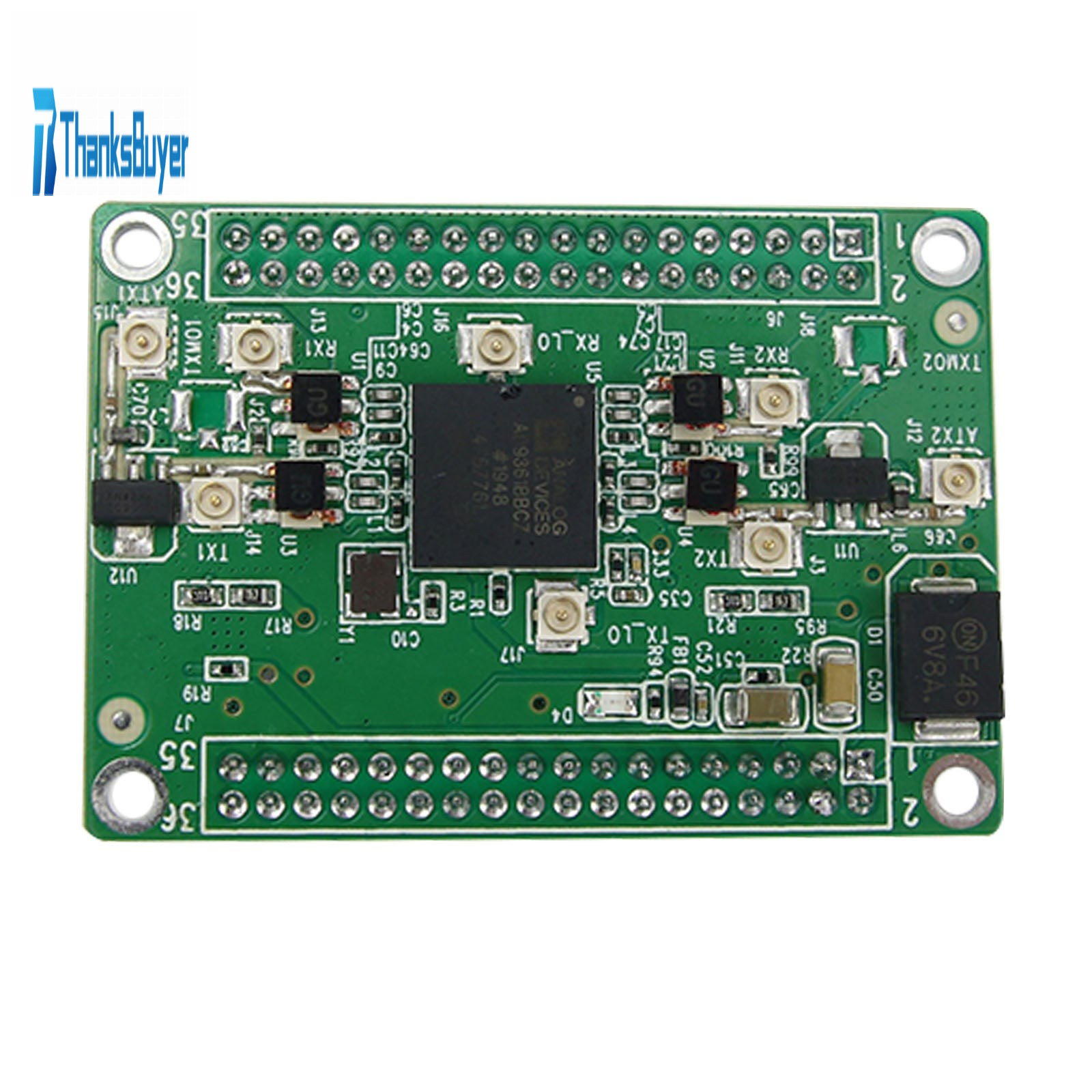 Among them, J6 and J7 are the power supply and digital circuit interface of the module, which is composed of two 18 * 2 pin headers with a pin spacing of 2mm, leading to all the digital interfaces of the AD9361. The power supply is 5V DC.