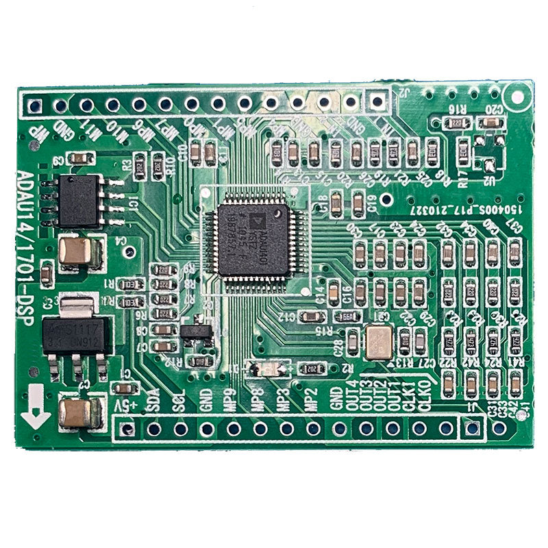 - This edition is suitable for ADAU1401/1701/1702 learning and product use. ADAU1401 is more stable than ADAU1701 in the bad working environment of -40℃ -105℃ (ADAU1701 is generally 0-70 degrees). The program can be used and the other indexes are the same. With power on self start, it can run independently from SCM. The whole function port is brought out, which can expand the digital I2S input / output / key function, /LED driver / auxiliary ADC (potentiometer simulation) / encoder volume control.