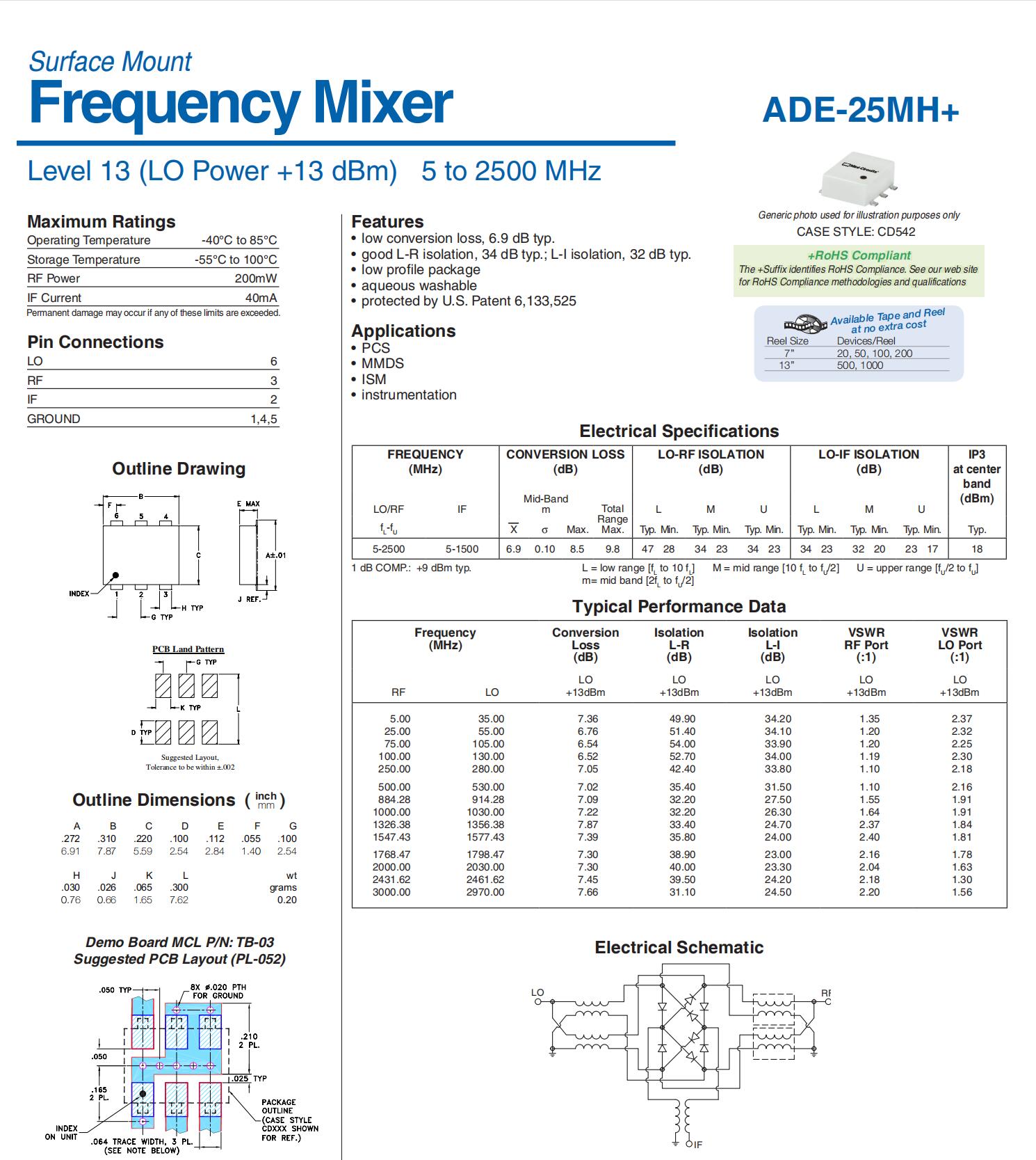 ADE-25MH+ Passive Wideband Frequency Mixer RF Mixer 5M-2.5G Double Balanced Mixer Module With Case