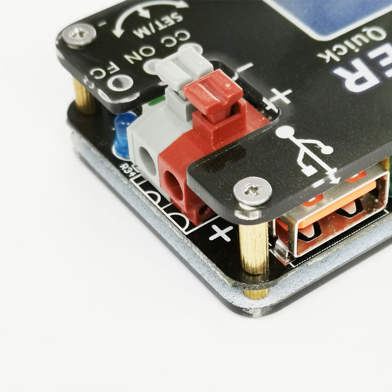 - It is powered by a 5V charging power adapter. With input over 4A, the module can output 15W. (considering the voltage drop on USB cable and the module conversion efficiency, etc.). It is difficult to realize with an ordinary 5V adapter. Therefore, the module adds a fast charge triggering function, which can make an adapter to output high voltage or high current. Fast charge function only supports chargers or charge banks with quick charge protocol