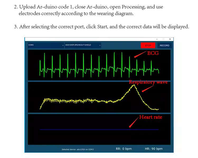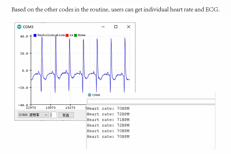 ADS1292R is a dual-channel, 24-bit analog front end with low power consumption. It is used for bio-potential measurements. The ECG front end is particularly suitable for medical instrumentation and high-precision data acquisition. The board is added with pin function and Bluetooth wireless transmission, which is free from the shackles of measurement, making the experiment simple and enabling easy application.
