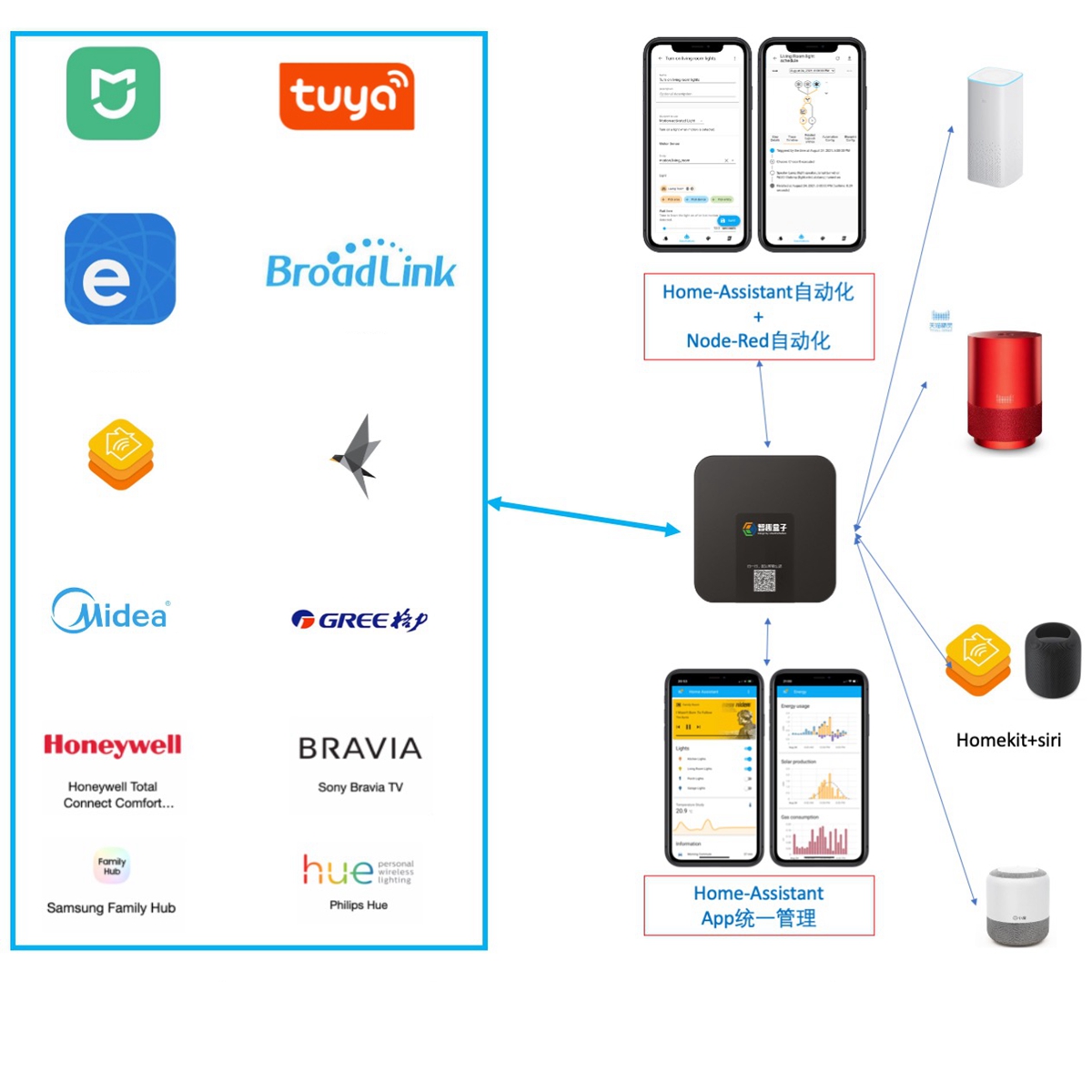 - Software platform: Home-assistan&node-red; docker