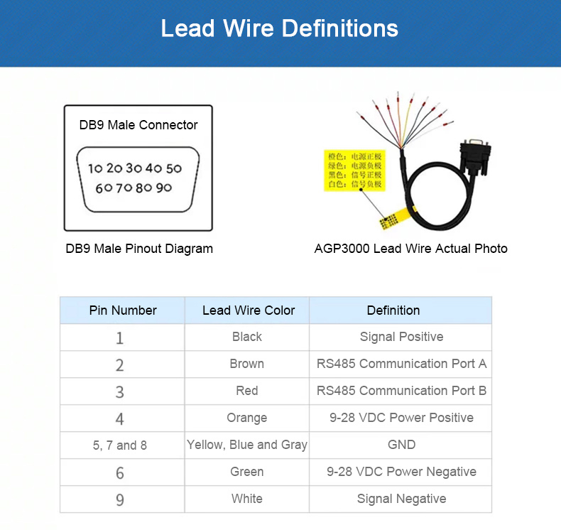 * Output Signal: RS485, 0-10VDC (input impedance >500kΩ)