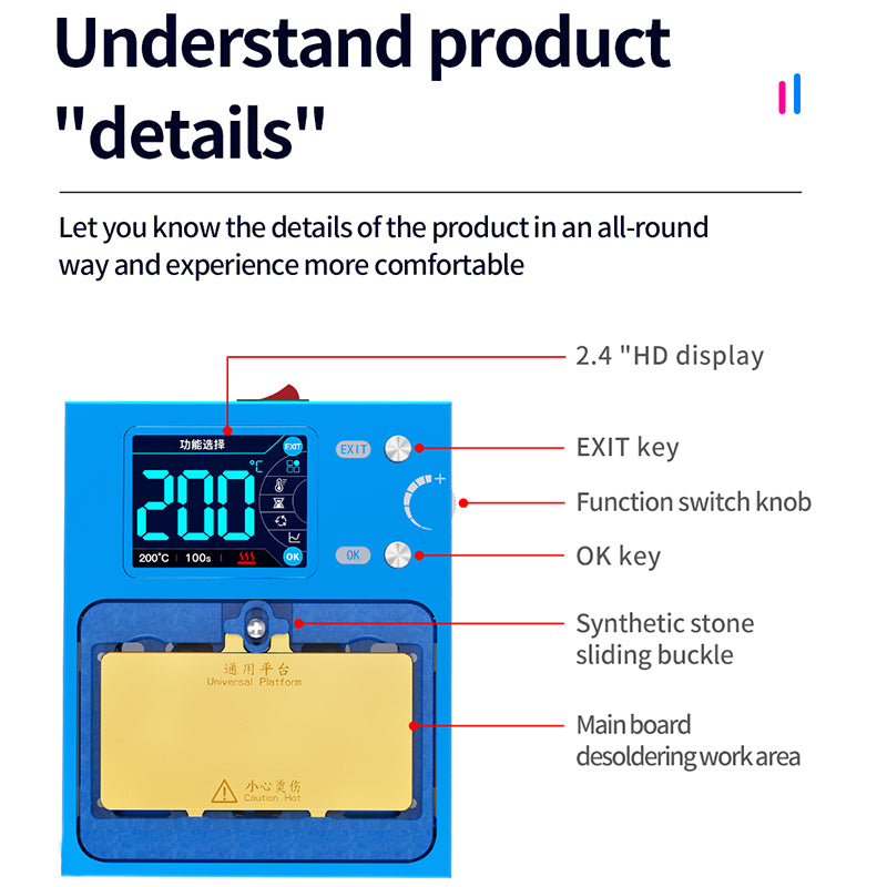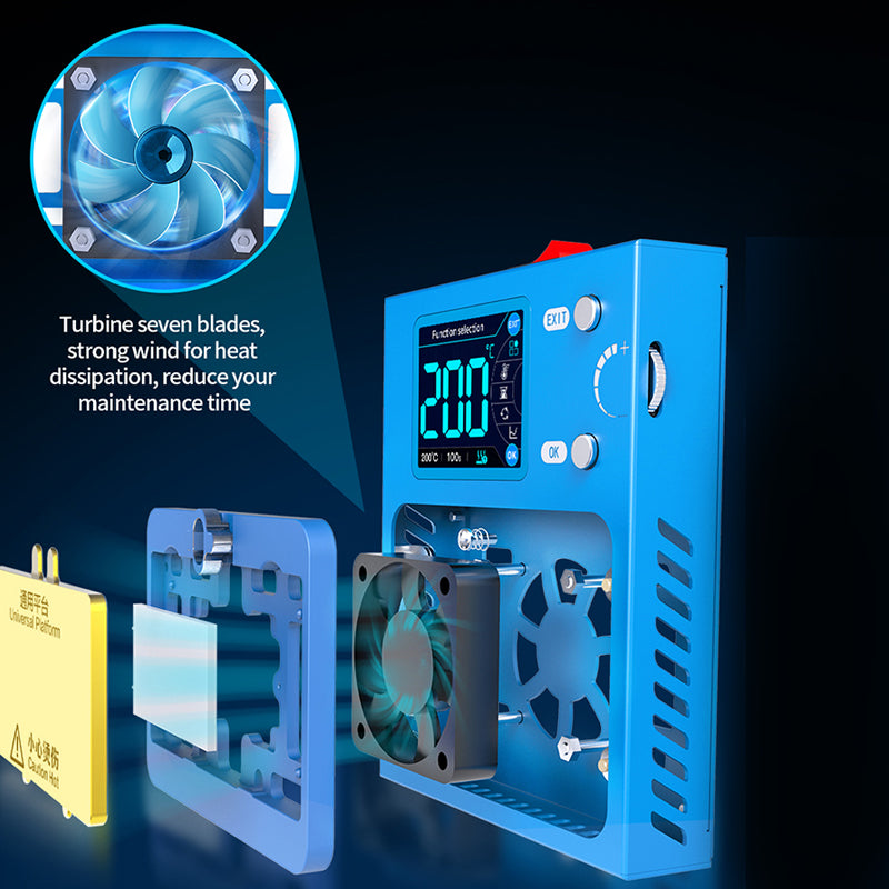 - Intelligent de-soldering / rework hot plate with temperature control.
