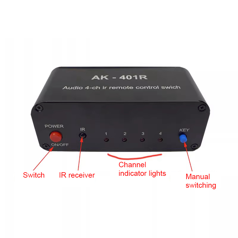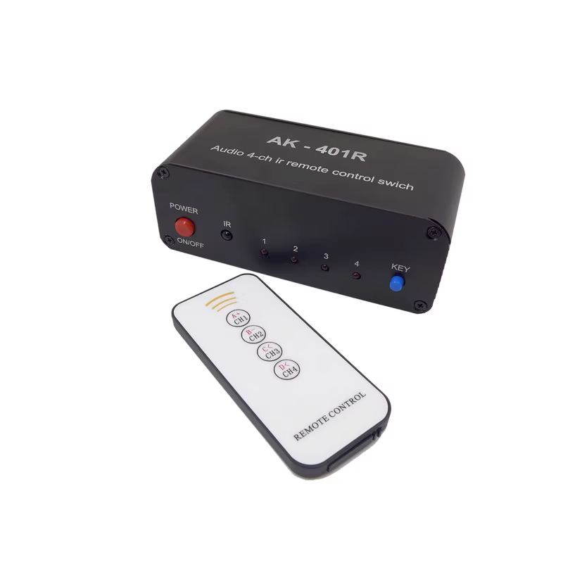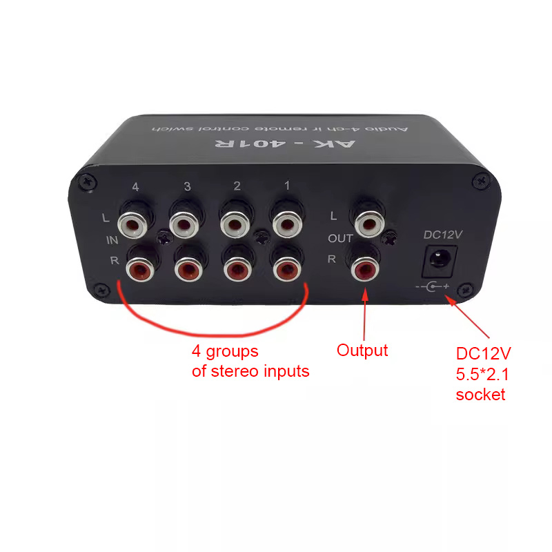 AK-401R Audio Switcher Audio Selector with IR Remote Control Supports 4-Channel Stereo Audio Source