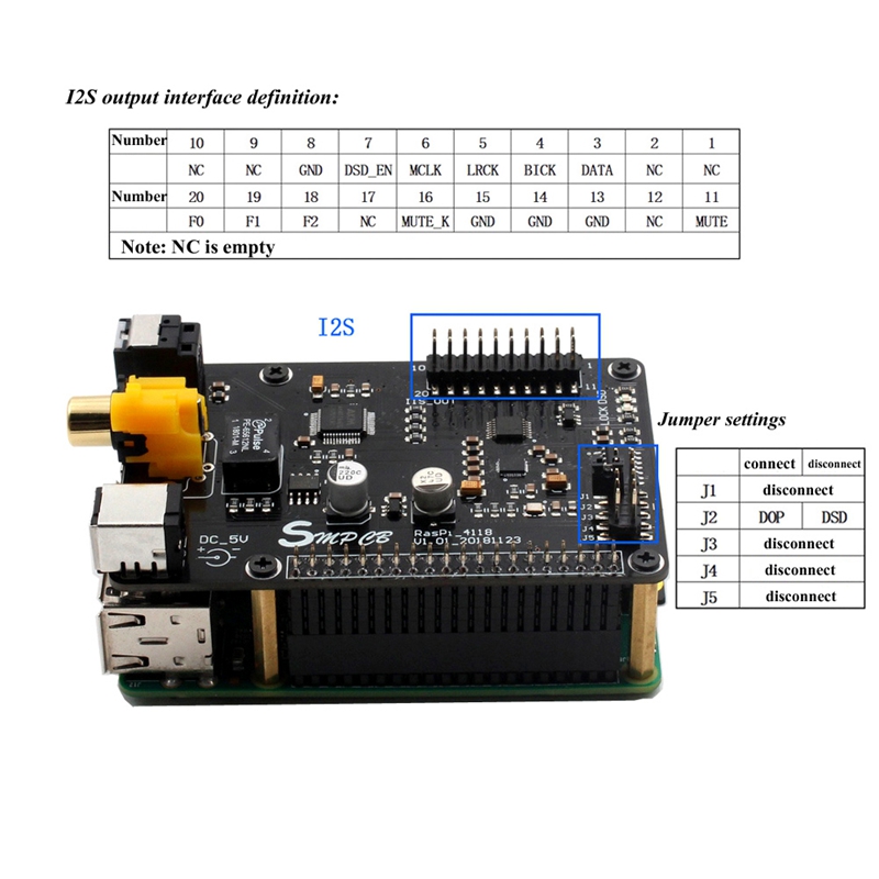 - I2S output mode for Raspberry Pi. It plays music smoothly and naturally, out-rivaling USB playing mode in performance.