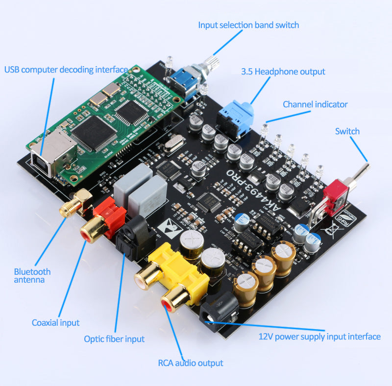 AK4493 DAC Decoder Board USB Digital Interface CSR8675 Bluetooth 5.0 w/ Italian USB Card For APTX-HD