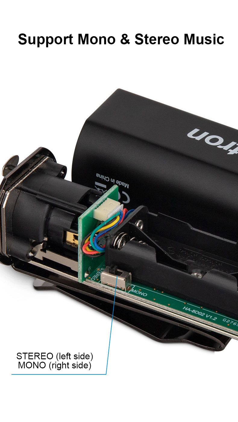 - For Mono & Stereo Music: The HA-8 supports dual-mode switching and provides mono and stereo music modes. MONO mode: Signals can be output via a mixer auxiliary interface or a mono interface. STEREO mode: Connect it to headphones or other stereo equipment.