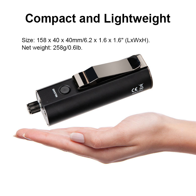 - Compact and Lightweight: Made of aluminum alloy, its black body is sturdy and durable to use. It can be put into your bag. With a belt clip, it can be attached to your belt or backpack's shoulder straps.