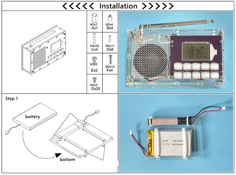 - This product is a high-sensitivity digital clock-controlled radio kit that integrates FM, AM, and SW three bands. It adopts a modular structure of splicing and installation. It is very suitable for radio electronics enthusiasts, electronic DIY enthusiasts and primary and secondary school students to exercise their hands-on ability. The circuit modules are connected by connectors. The installation process only needs to prepare a screwdriver and refer to the installation diagram to complete. A high-sensitivity digital radio can be assembled without using an electric soldering iron.