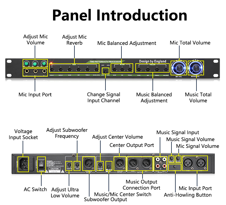 Analog Effector Two Pattern KTV Processor Home KTV Preamplifier Effector Mic Reverb For RCA Cable