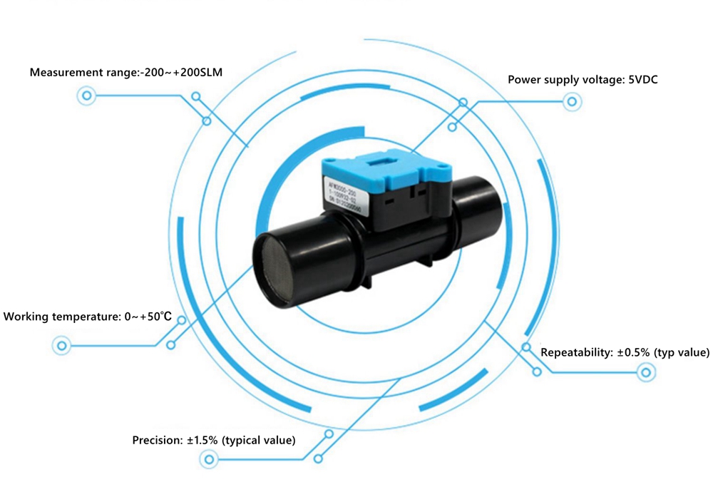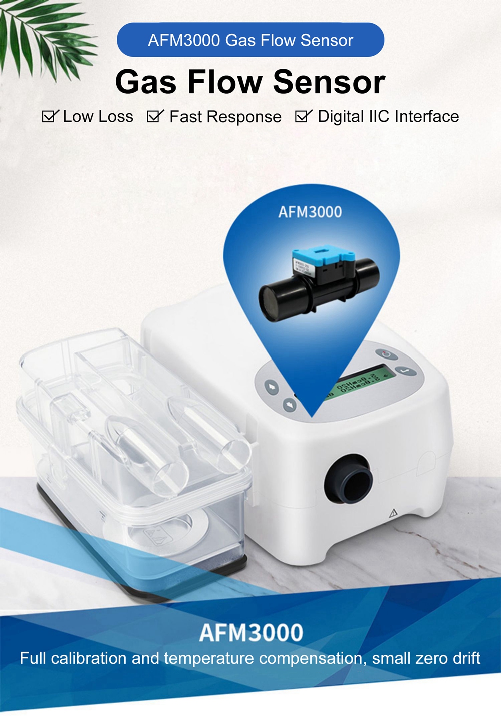 - AFM3000 series sensor is specially designed for ventilator application. It measures the flow of air, oxygen and other non-corrosive gases with superb accuracy. The special design in the air duct makes the pressure loss of the fluid passing through the sensor very low, making its performance suitable for various harsh application scenarios, such as medical ventilation and respiratory applications.