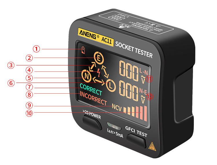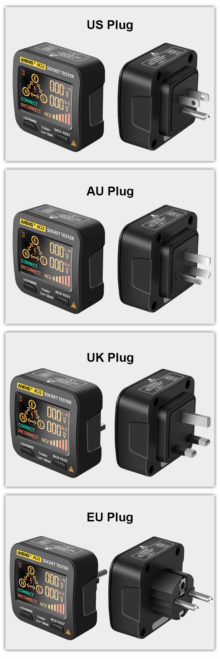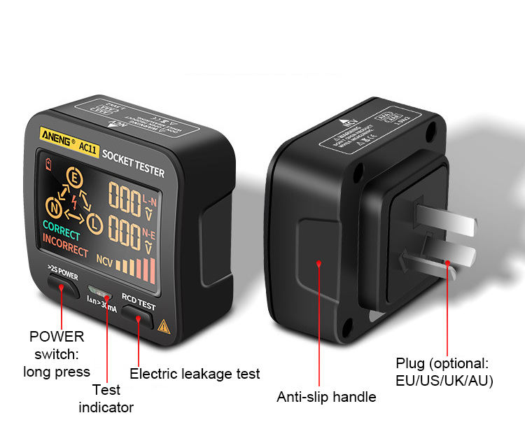 ANENG AC11 Digital Socket Tester Electric Outlet Tester with Color Screen Supports NCV Detection