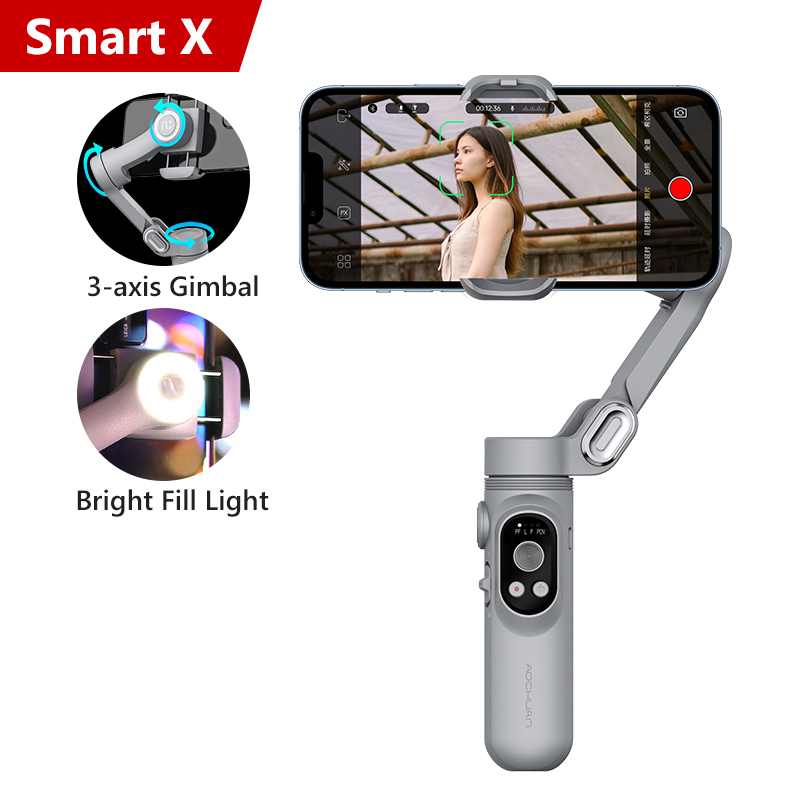 AOCHUAN SMART X 3-axis Phone Stabilizer Phone Gimbal w/ Fill Light for Vlog Live Streaming Recording