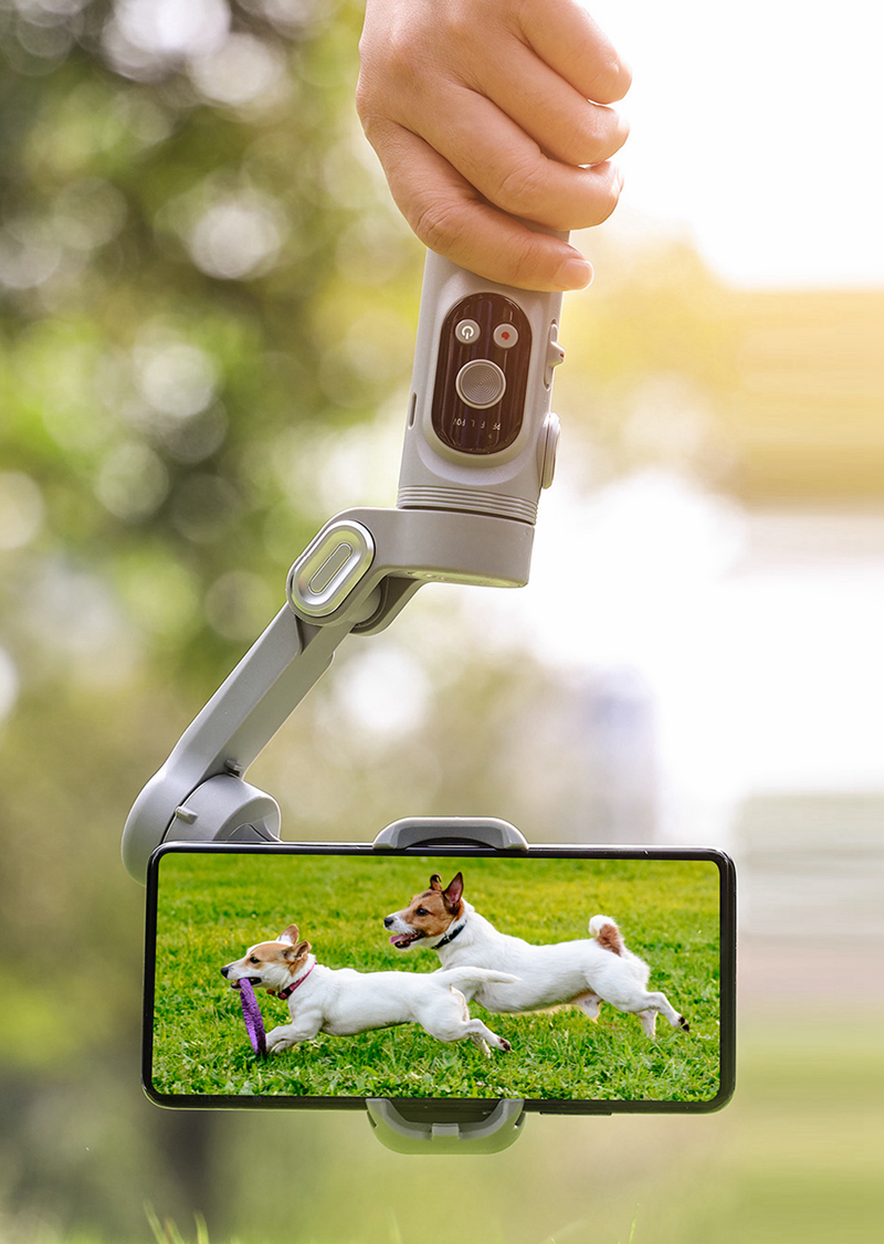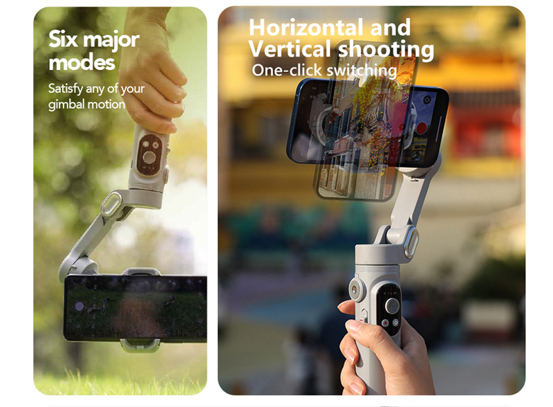 - Ultralight design: it only weighs 295g/0.7lb. It is easy to unfold and fold the gimbal in one second. The stabilizer can be stored in your backpack and pocket of your coat